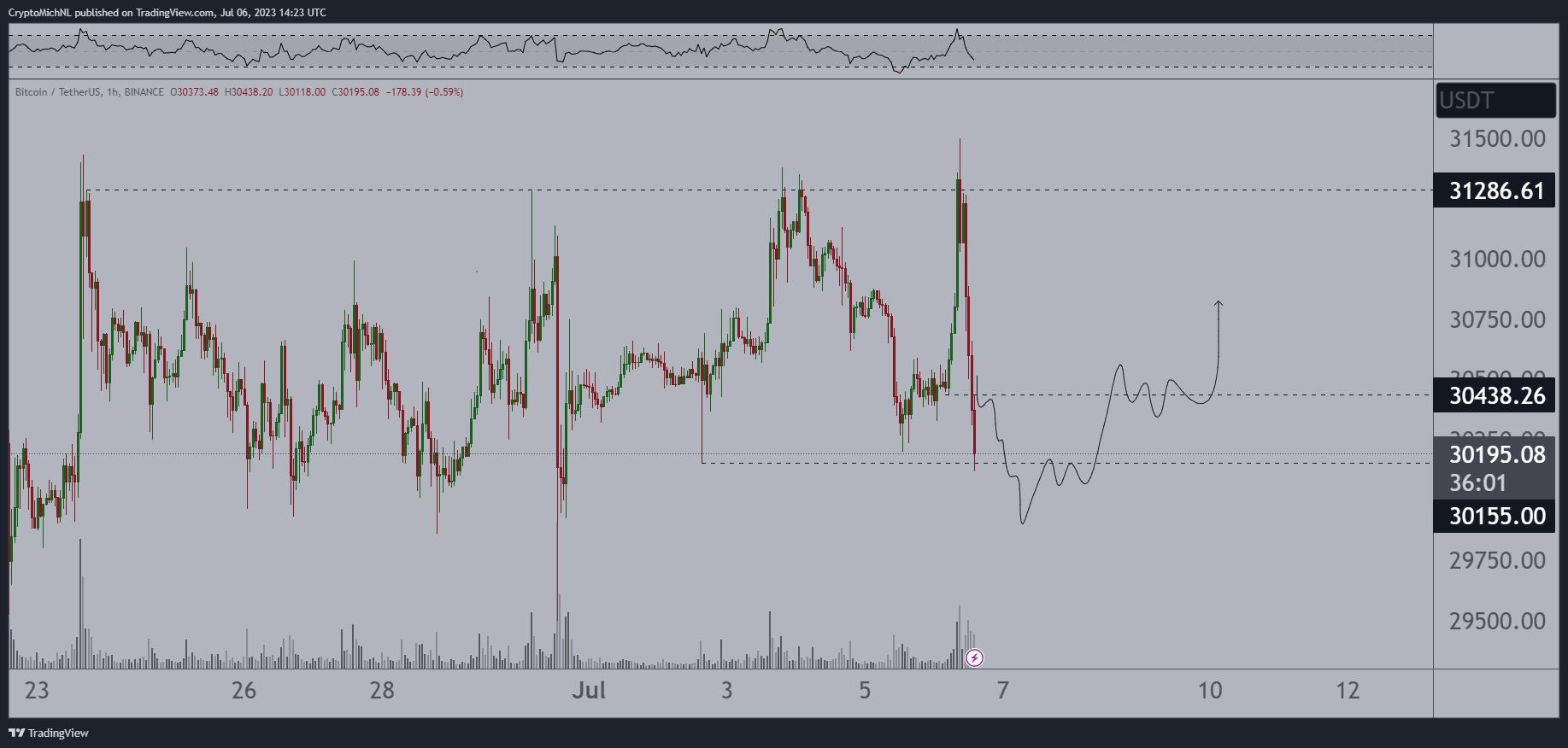 “Needs to flip back up here, otherwise $28,500 scenario seems likely for Bitcoin. Markets expecting a rate hike due to positive unemployment data.”