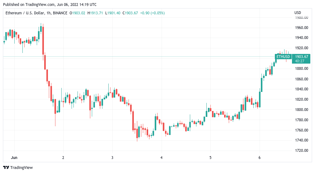 Among them was Ether (ETH), the largest altcoin by market cap, which saw daily gains in excess of 7% to pass $1,900.