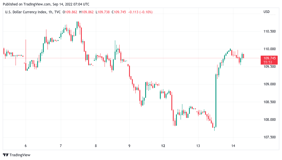 At the time of writing, the index circled just under 110, less than 0.9% below that macro peak seen earlier in the month.