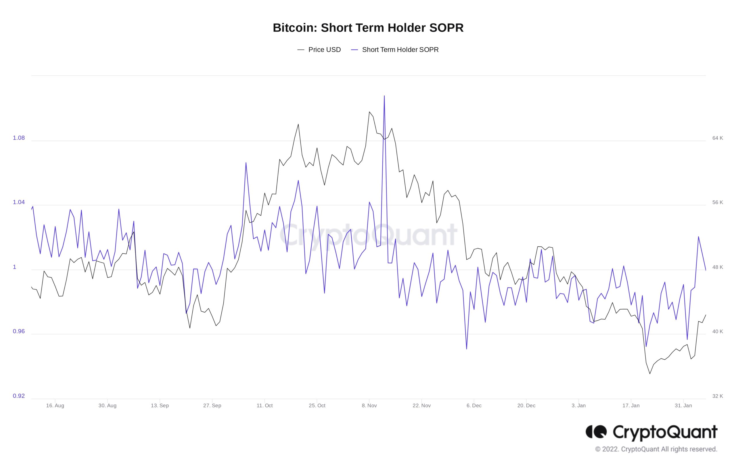 The spent output profit ratio (SOPR) for short-term holders meanwhile saw its first meanwhile bounce above the 1 mark since Christmas this weekend.