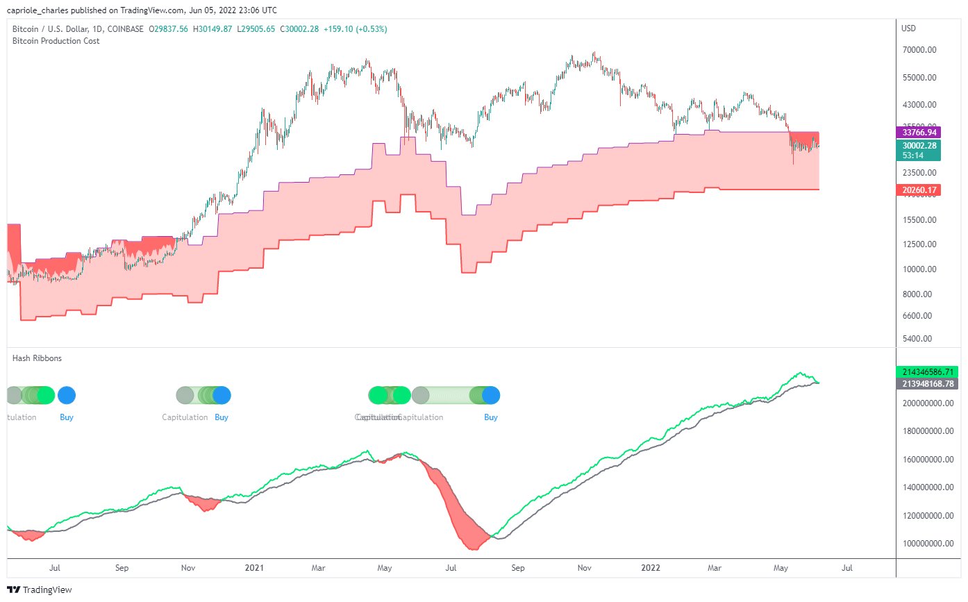 “Hash Ribbon miner capitulation is very close. Bitcoin mining profit margins are getting squeezed,” Edwards commented.