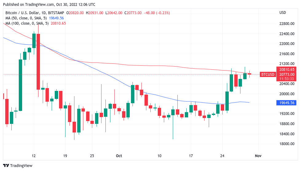 Data from Cointelegraph Markets Pro and TradingView showed BTC/USD circling levels just below $21,000 on the day.