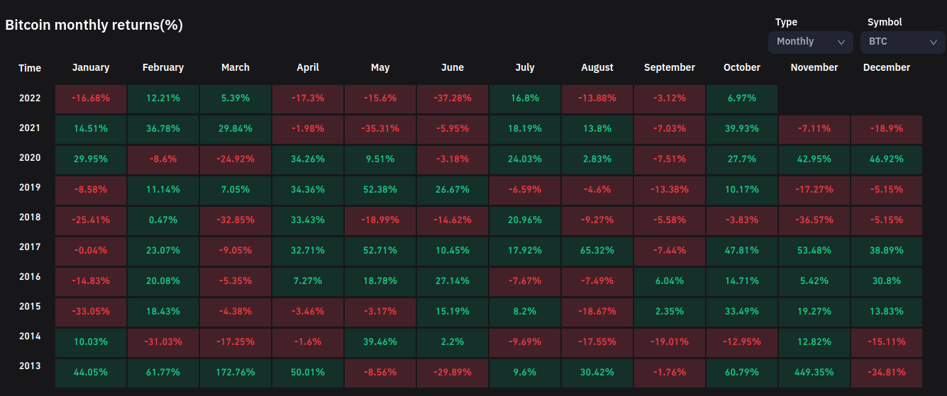 At current prices, Bitcoin was meanwhile up 7% in October, still its third-weakest performance since 2013, according to data tracked by monitoring resource Coinglass.