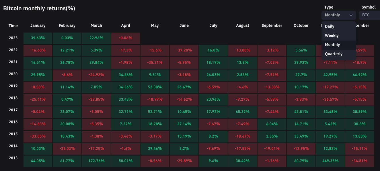 According to data from Coinglass, 23% gains for BTC/USD almost match its 2021 performance, with 2013 remaining its most volatile.