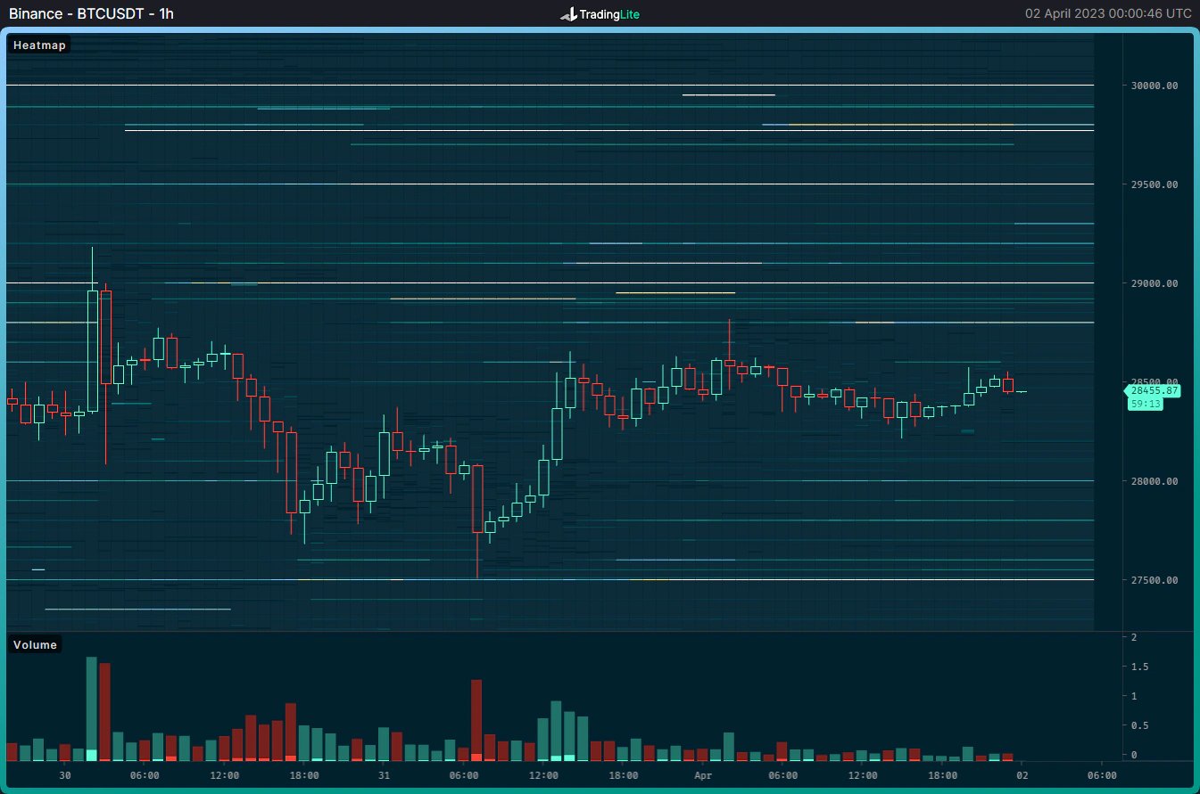 Data from Cointelegraph Markets Pro and TradingView showed BTC/USD stable over the weekend after closing out March at near $28,500.