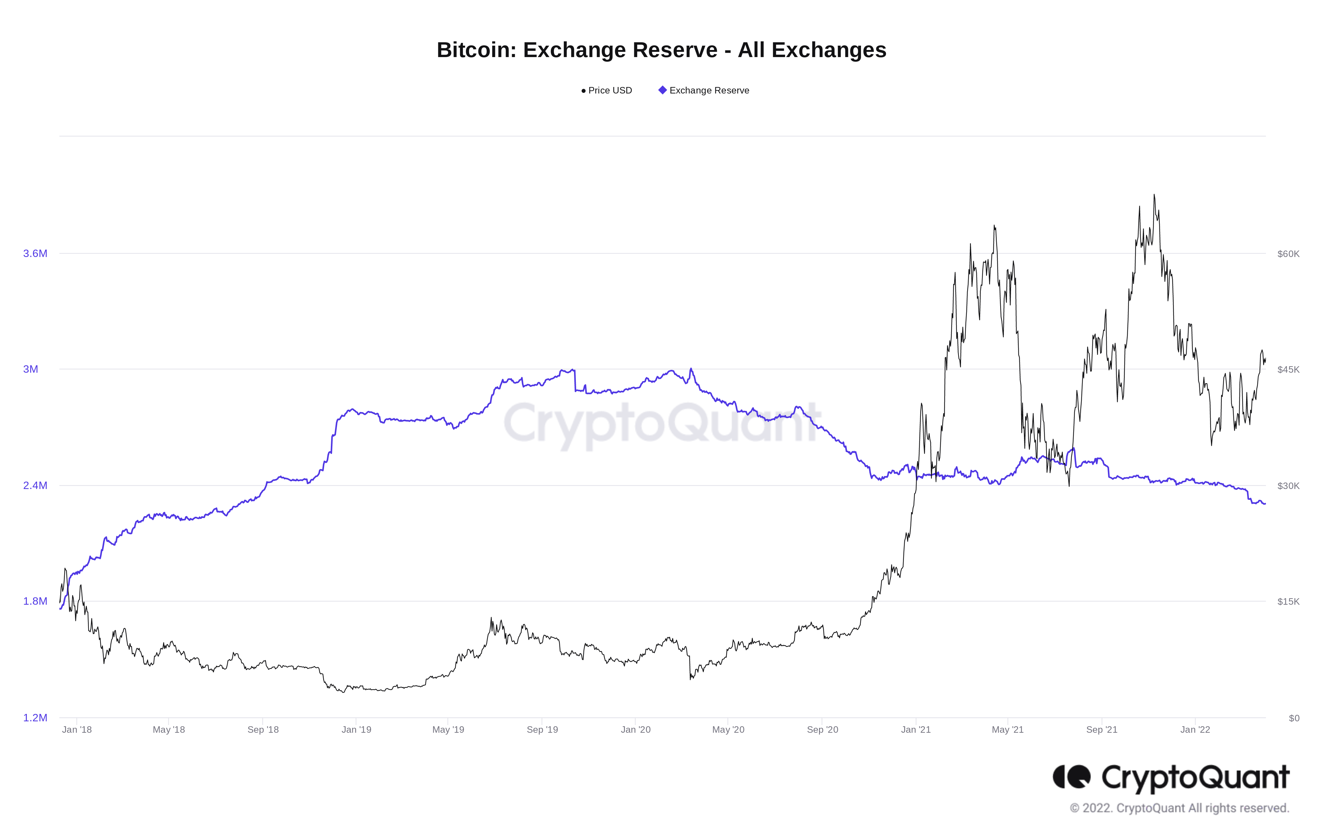 A meandering downtrend in 2022 gathered pace in March, which saw a total of 77,000 BTC withdrawn to private wallets.
