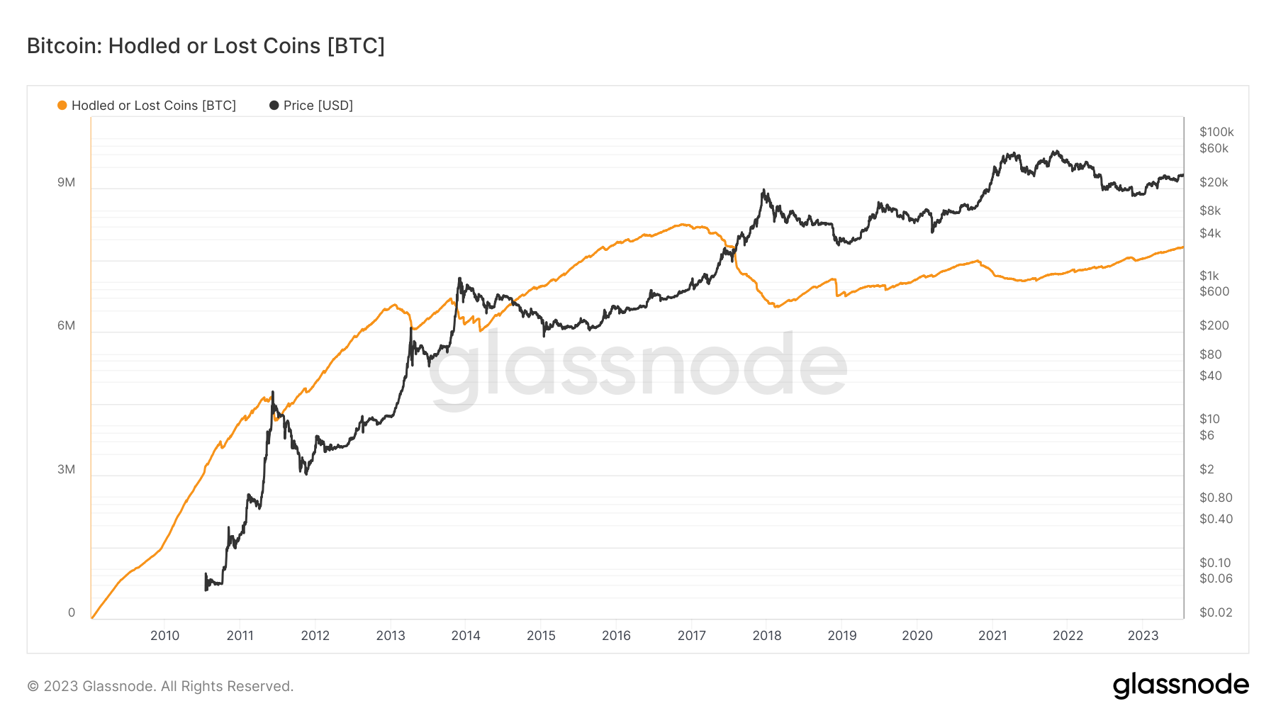 Over 7 million BTC “hodled or lost”