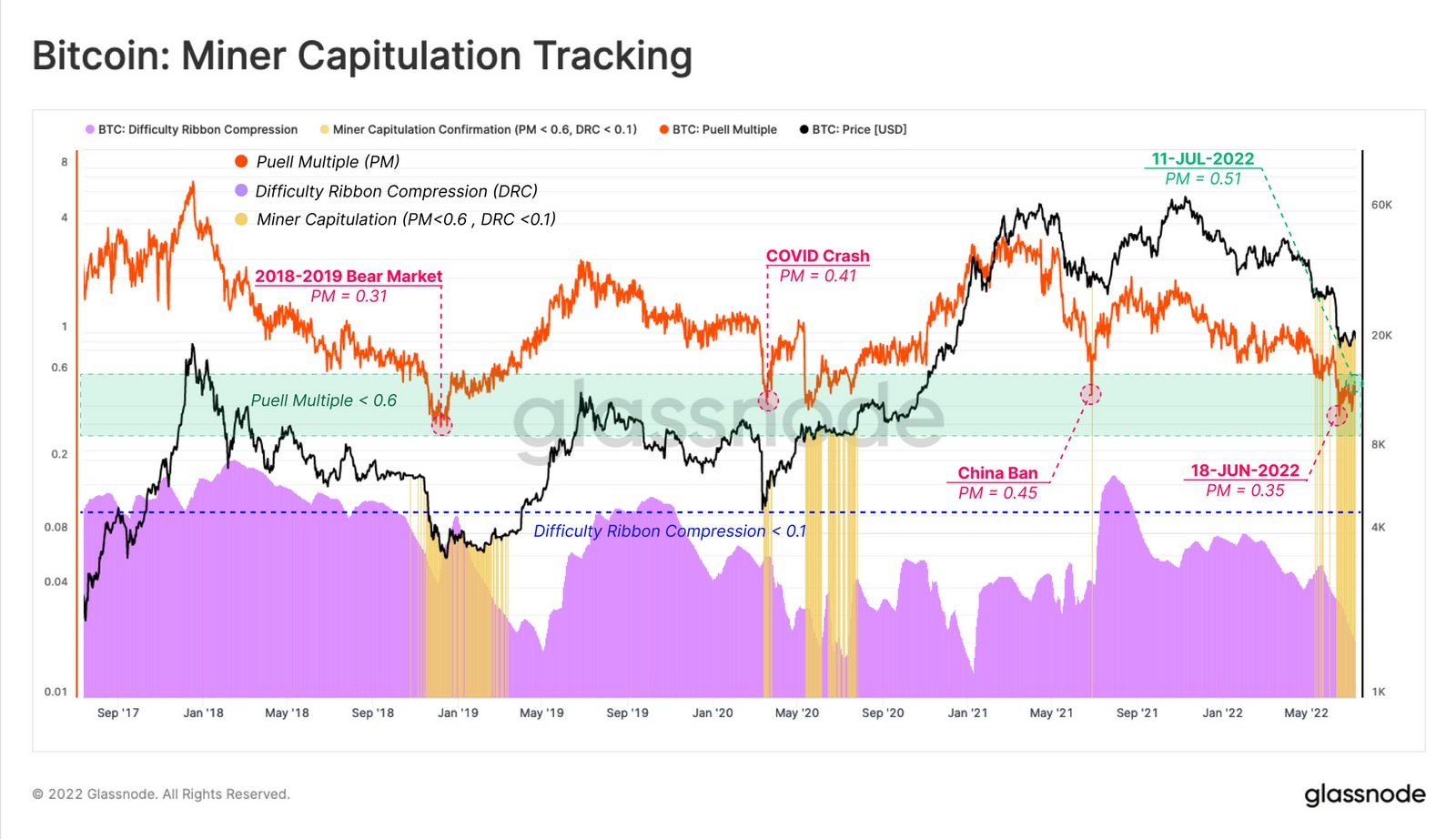 Bitcoin miners selling coins is evidence that the market could be testing bottom ranges. Glassnode demonstrated that miners have sold 7,900 BTC since late May but have recently slowed spending to about 1,350 BTC per month.