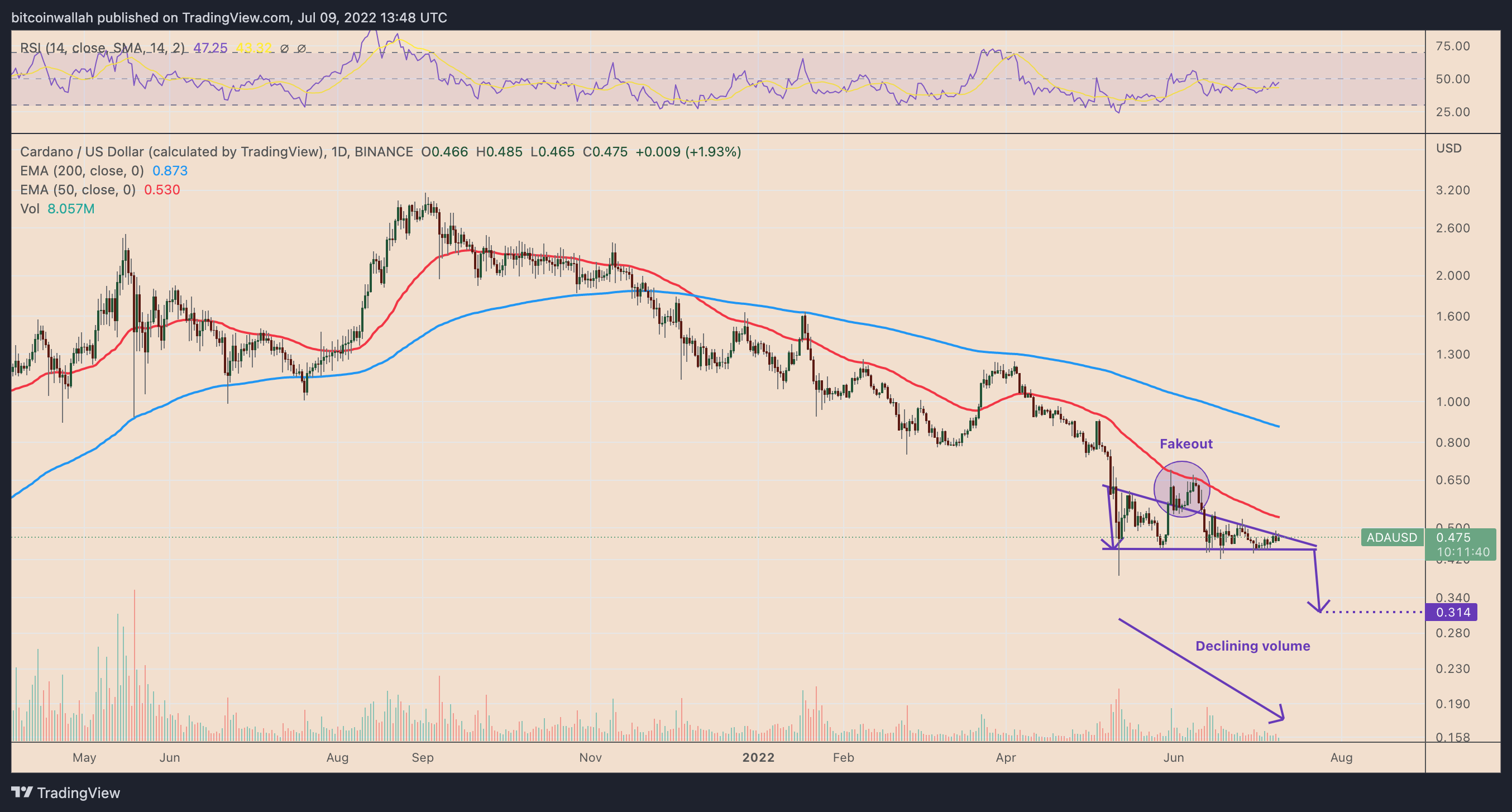 ADA price “descending triangle” could spoil the party
