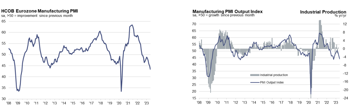 V júni eurozóna zaznamenala najprudšie zhoršenie sektora výroby tovarov od mája 2020. V Holandsku nastal najväčší pokles obchodu za 3 roky, zatiaľ čo Grécko zaznamenalo piate po sebe idúce zlepšenie výkonnosti vo výrobnom sektore. Celkovo klesol príjem nových objednávok najviac za posledných 8 mesiacov.