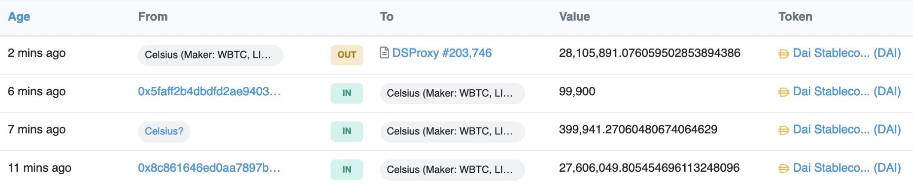 Twitter analyst Hsaka said that on-chain data shows that the $28 million in Dai (DAI) that was recently deposited into a wallet controlled by Celsius and has since been sent to a separate address, which he identified as a debt repayment address.