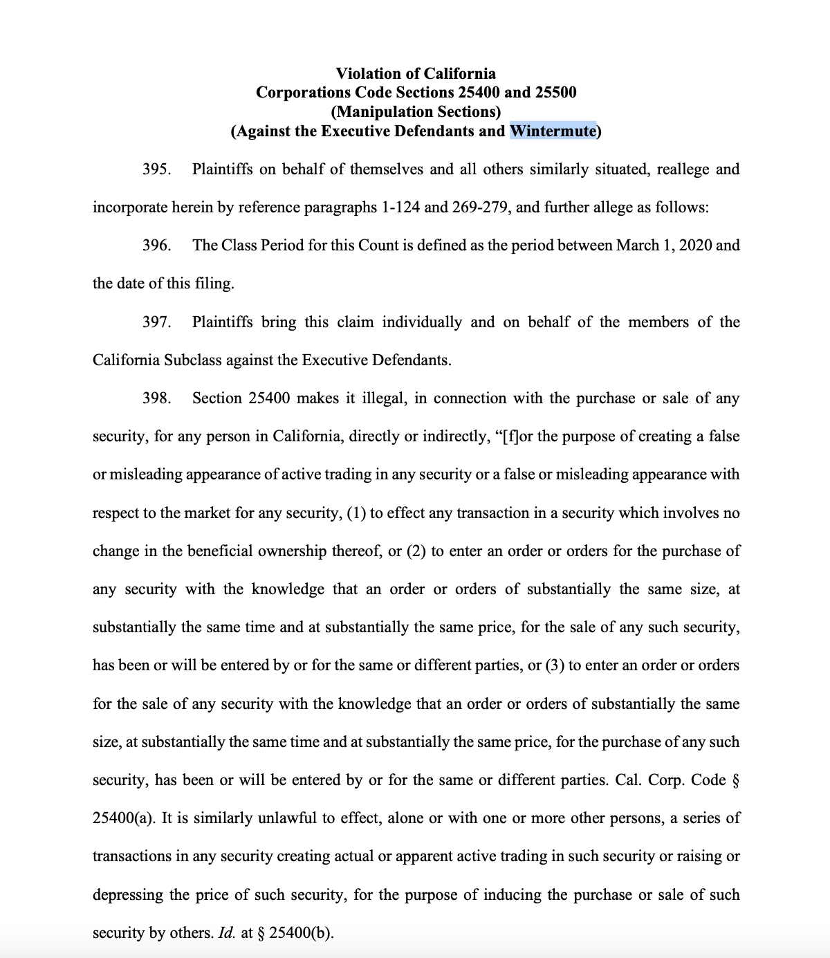 “Defendant Wintermute and the Executive Defendants engaged in a scheme that artificially inflated the trading volume of the CEL tokens sold and marketed by Celsius.”