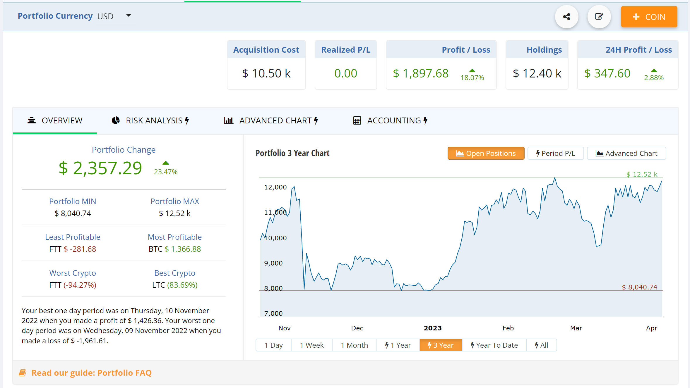 Preto prekvapivo aj napriek rastu bitcoinu je naše hodl portfólio stále na približne 12 000 dolároch.