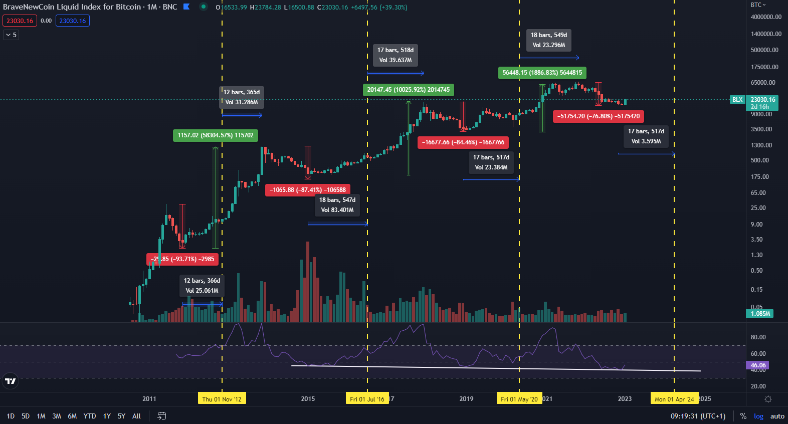 Cena bitcoinu sa blíži ku 30 000 dolárom, kde bola najznámejšia kryptomena naposledy ešte pred rokom. To je zatiaľ najlepší výkon od roku 2019, kedy sa začal posledný rastúci trend, ktorý trval do roku 2021. V podstate sa môže história znovu opakovať, keďže bitcoin sa od svojho vzniku pohybuje v 4-ročných cykloch. Tie najviac ovplyvňuje halving. Preto sa nazývajú aj halvingové cykly.