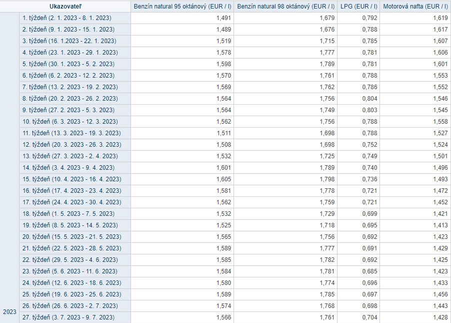 Ešte v apríli sme vás informovali, že cena za benzín a naftu môže do leta stúpnuť. Zatiaľ k výraznému nárastu nedošlo a vzostup ceny ropy sa zatiaľ prejavuje iba mierne. Napriek tomu v lete stúpa dopyt celosvetovo, keďže dopyt po cestovaní prudko rastie. V súčasnosti podľa údajov Statdat tankujeme na Slovensku za tieto ceny: