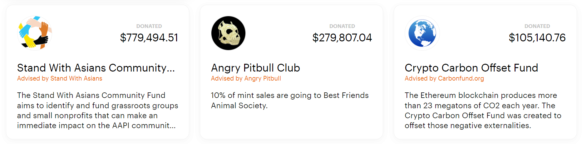 Endaoment represents the latest generation of blockchain giving — but it is not the first. In 2017, a mysterious figure calling themselves Pine anonymously donated 5057 Bitcoin, worth $55 million at the time, to a collection of over 60 charities.