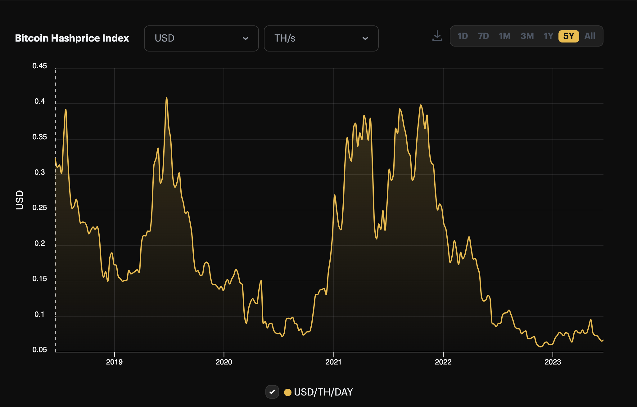The ongoing expansion overlooks the declining profitability of Bitcoin mining, which has dropped to $0.066 per TH/s per day at the time of writing, down from its $0.40 peak in June 2019, according to data from Hashrate Index.