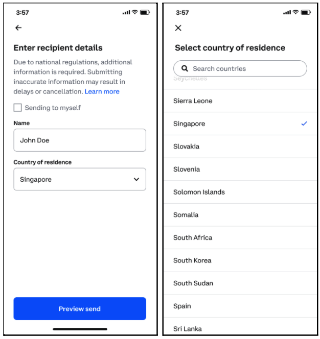 Singapore users will not require to provide the recipient’s residential address but will require only the recipient’s name and country of residence. The lack of any required information will bar the user from sending cryptocurrencies out of the Coinbase platform for the jurisdictions in question.