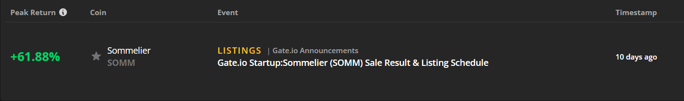 SOMM also performed well this week, after a NewsQuake™ about its listing on Gate.io. Just three days after the NewsQuake™ informed Markets Pro subscribers of the listing, the token’s price shot up 62%.