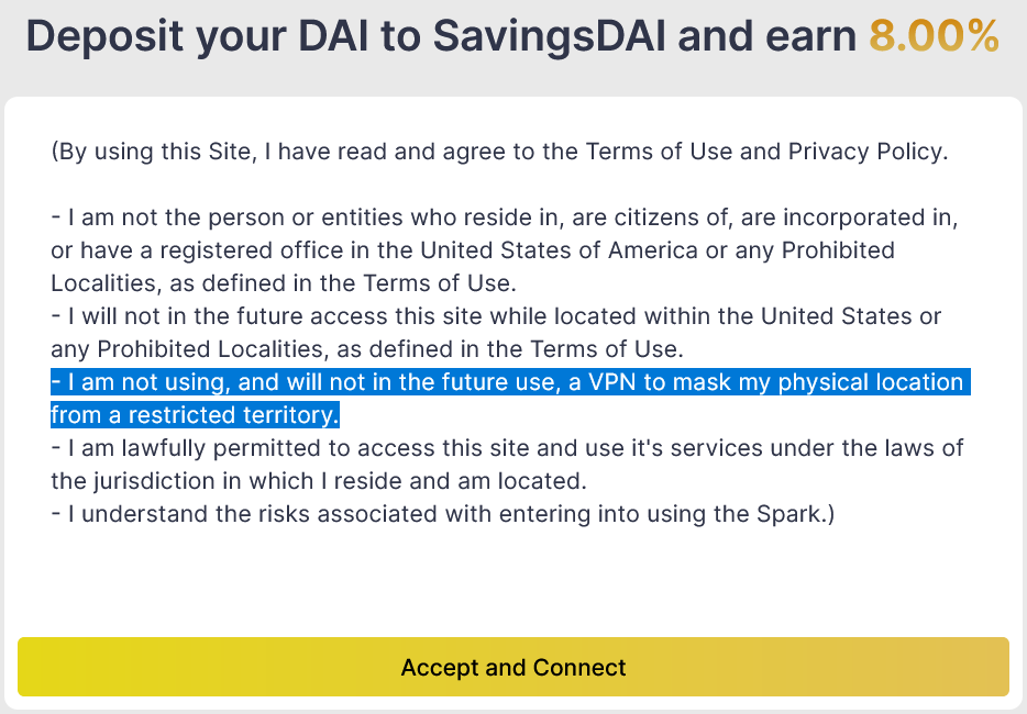 The measure appears to be linked to Maker’s attempt to restrict United States users from accessing the crypto lending platform — discussed in Spark Protocol’s terms of service updated May 9 — which also warns against the use of VPNs to circumvent the block.