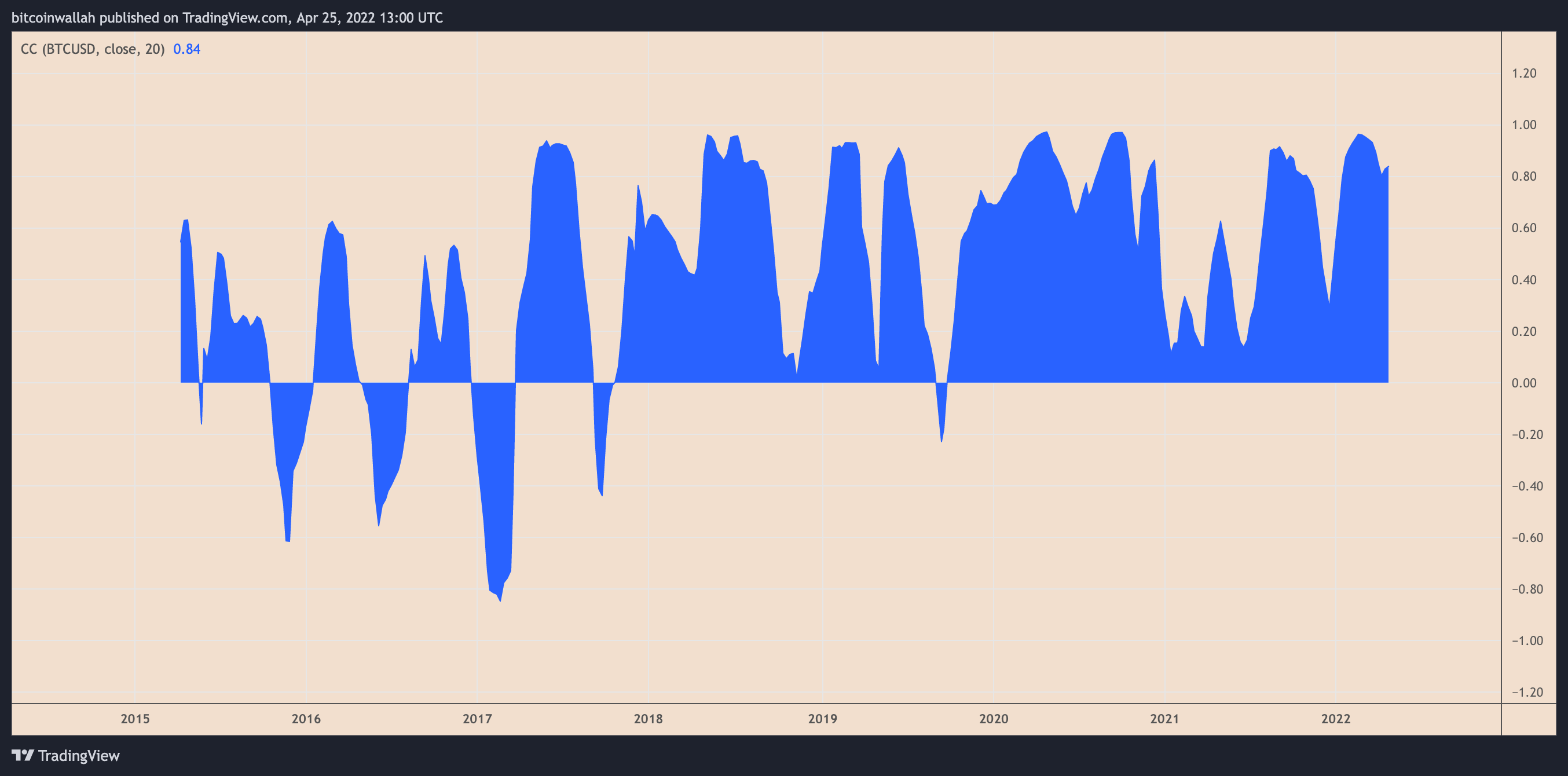 The bearish outlook for XRP comes majorly in the wake of a similar selloff happening across Bitcoin (BTC), Ether (ETH), and the rest of the crypto market. The correlation between Bitcoin and XRP was 0.84 this April 25. A perfect score of 1 indicates that the two assets move perfectly in sync with one another.