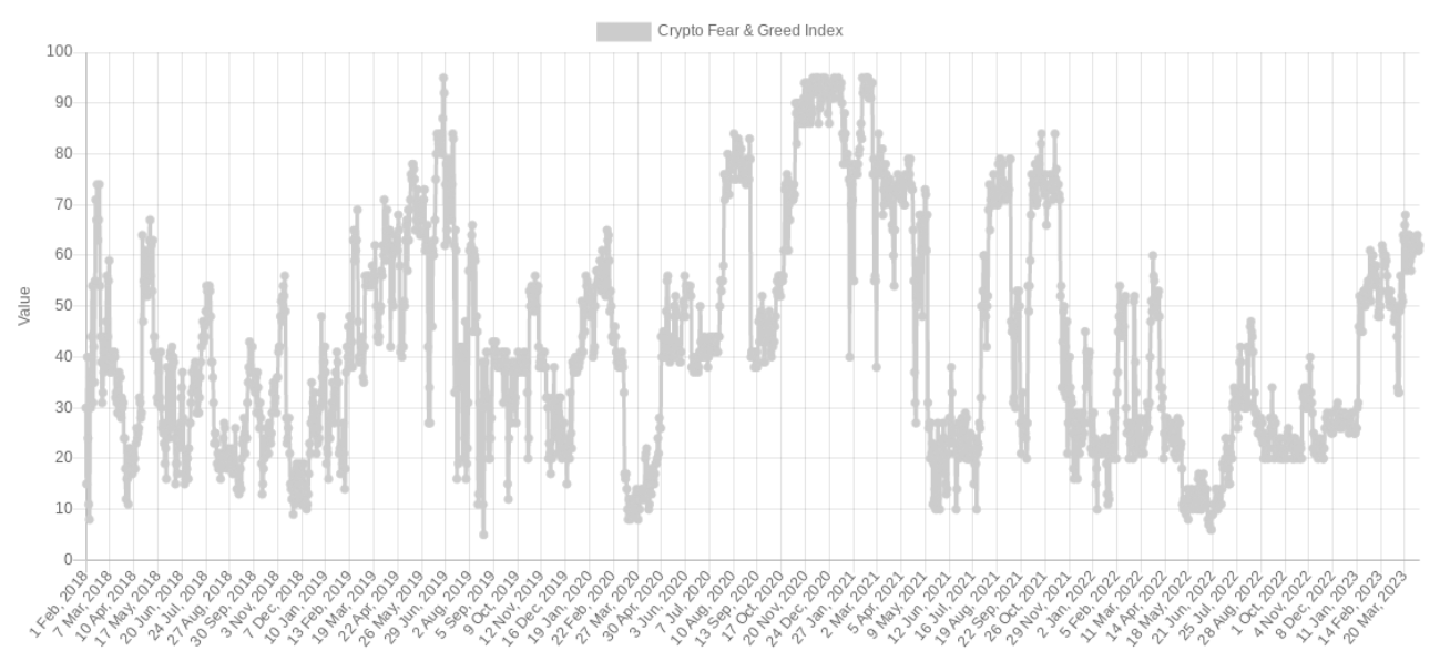 During Q1 2021, crypto market “greed” was much more intense, with the Crypto Fear & Greed Index spending much of the time near its maximum levels — traditionally a warning that a correction is due.