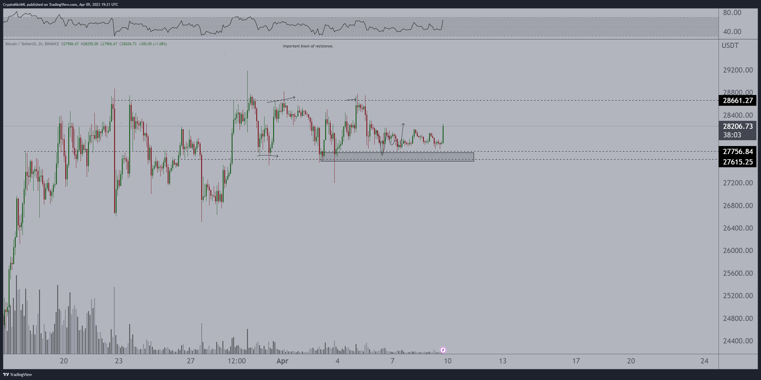 “Bitcoin consolidated at support and runs to $28,500. Another test of $28,600-29,000 and we’ll most likely breakout significantly,” he continued.