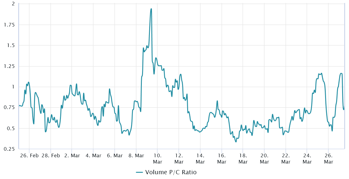 Traders can gauge the market’s sentiment by measuring whether more activity is going through call (buy) options or put (sell) options. Generally speaking, call options are used for bullish strategies, whereas put options are for bearish ones.