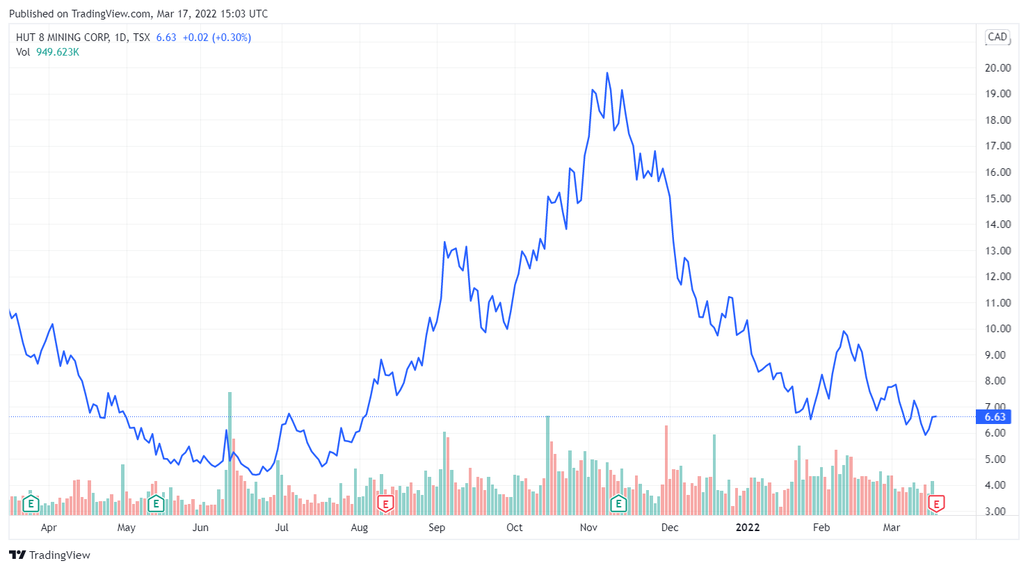 Shares of Hut 8, which trade under the ticker symbol HUT, fluctuated within a narrow range on Thursday. The stock was last seen trading at $5.23, according to TradingView data.
