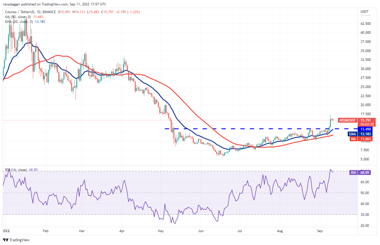 Cosmos (ATOM) broke above the overhead resistance of $13.45 on Sept. 8, indicating demand at higher levels. The next stiff resistance is at $20.30 which leaves room for a rally.