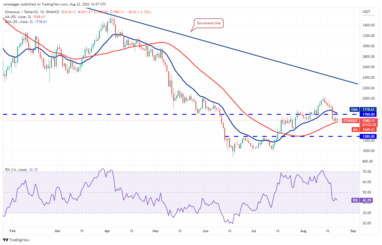 Ether (ETH) plunged below the 20-day EMA ($1,718) and the breakout level of $1,700 on Aug. 19, which suggests that traders who had purchased at lower levels were exiting their positions.