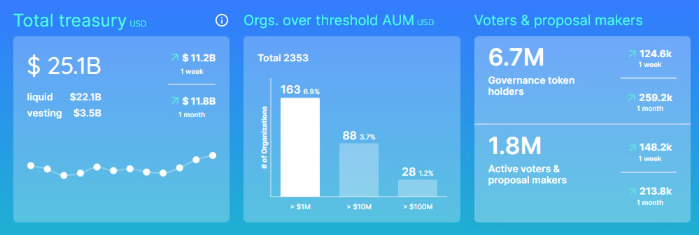 total value across all DAO treasuries surpassed $25B for first time ever pic.twitter.com/VcymWJOkOy