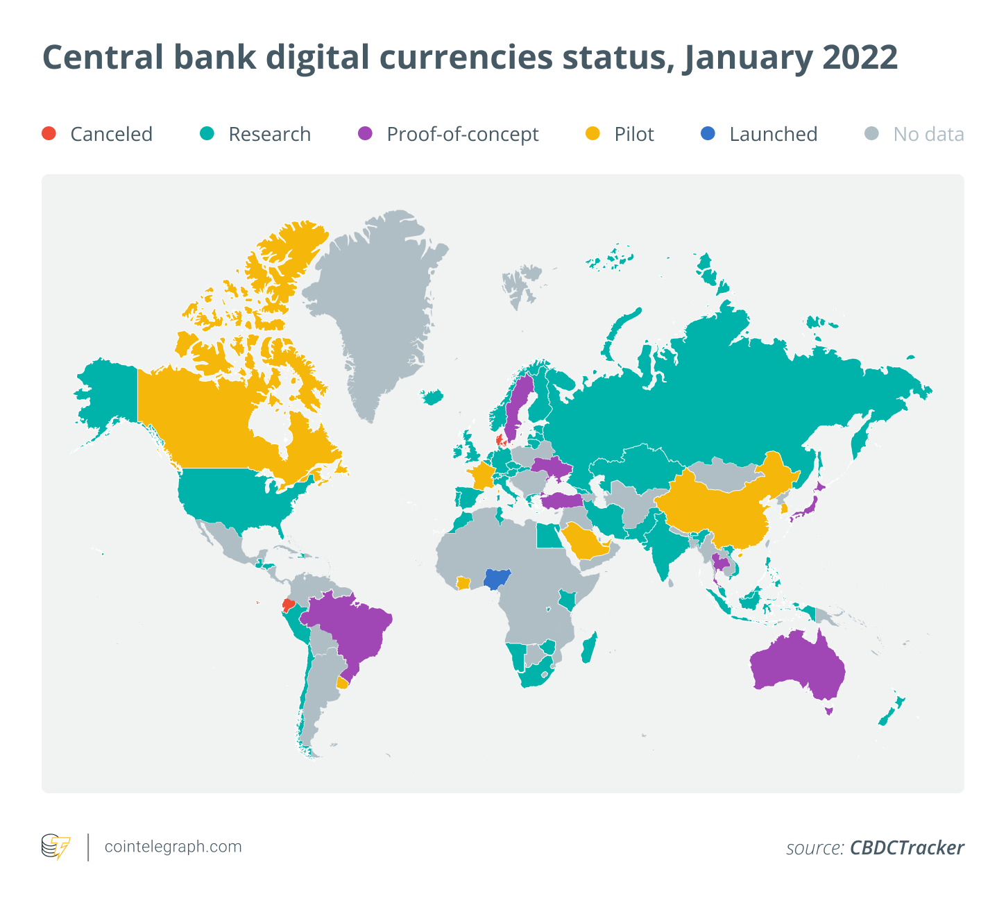 The Atlantic Council has developed a tool tracking all countries in terms of their various CBDC projects’ stages. Note that Ukraine, China, Sweden, South Africa, Malaysia, Singapore, Thailand, South Korea, Saudi Arabia, the United Arab Emirates and several others have already launched the pilot versions of their CBDCs. At the same time, Nigeria, the Bahamas, and Eastern Caribbean countries have launched their CBDCs as working projects.