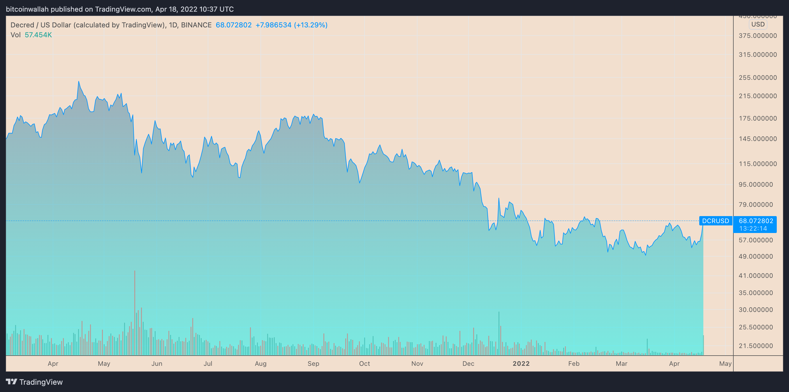 https://images.cointelegraph.com/images/840_aHR0cHM6Ly9zMy5jb2ludGVsZWdyYXBoLmNvbS91cGxvYWRzLzIwMjItMDQvYzY4OGEzMzctY2VkOS00OWRiLThmMDAtODQ5ZjEzMzRlYjkxLmpwZw==.jpgDecred (DCR) prices soared by as much as 45% on April 18 before paring some gains as traders bet on a major hard fork that aims to prevent pump-and-dump schemes by miners.