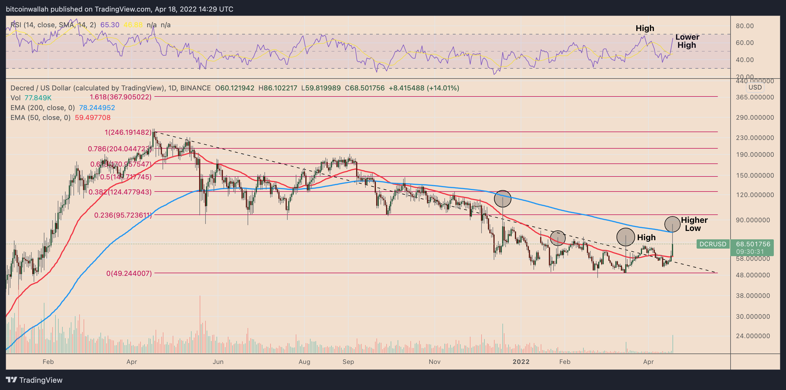 Additionally, the DCR price action on April 18 appeared very similar to massive upside moves witnessed since December 2021 — each showing the token forming daily candles with large bullish wicks.