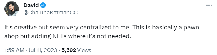 While some welcomed the new way of lending and borrowing, others believe that it’s centralized and is adding NFTs where it’s not necessary.