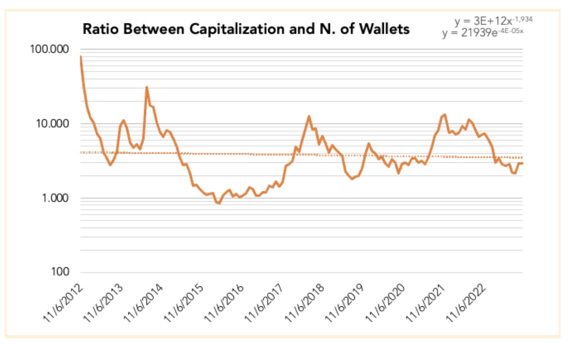 the number of wallets in circulation, I can also estimate the capitalization of the Bitcoin and, consequently, by dividing by the number of Bitcoin in circulation, derive its price.