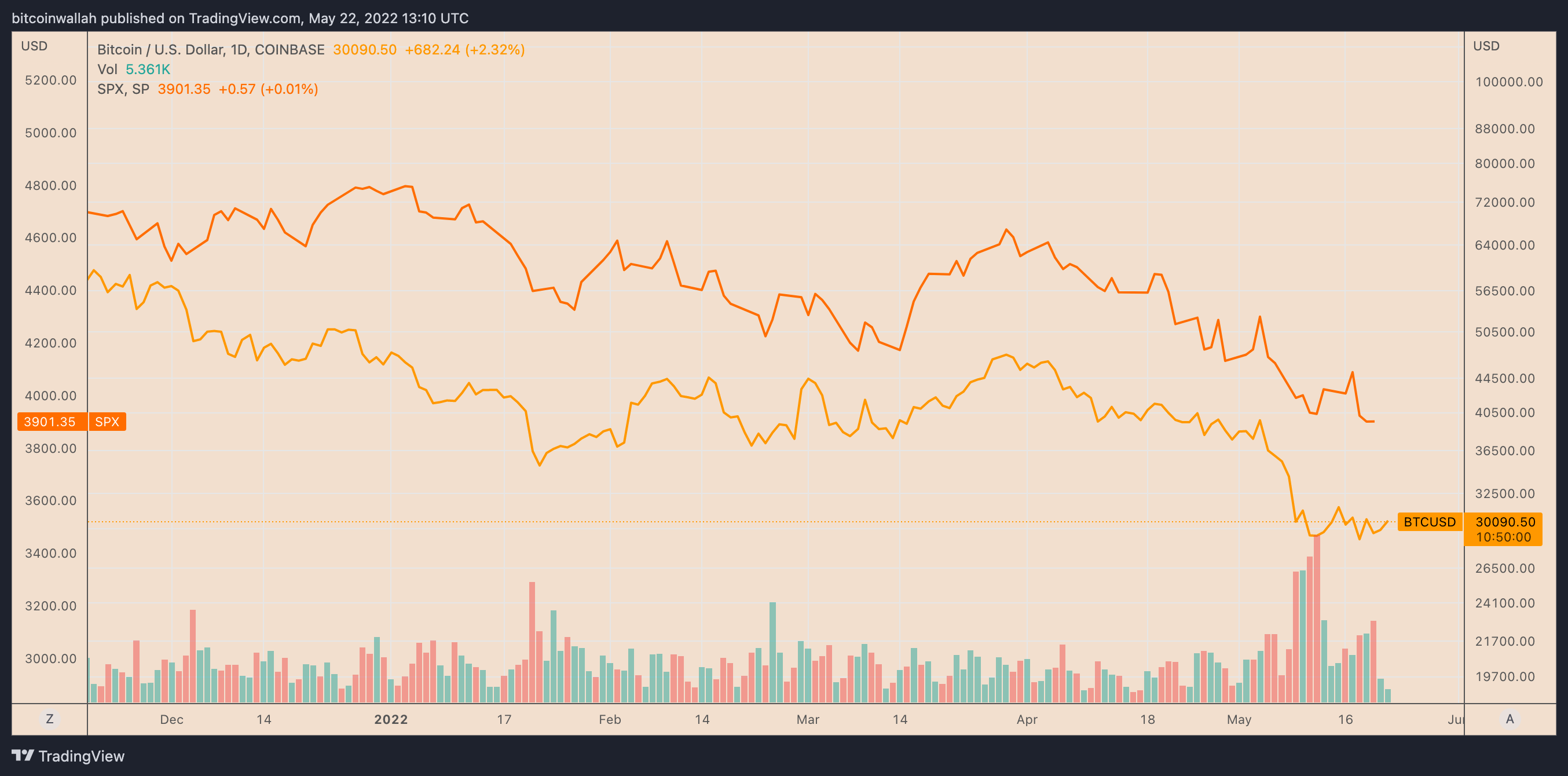 https://images.cointelegraph.com/images/840_aHR0cHM6Ly9zMy5jb2ludGVsZWdyYXBoLmNvbS91cGxvYWRzLzIwMjItMDUvNzgwMmM5OTMtMTMyMi00MjI4LTg0MTktOGUzNzBkMTI3N2QxLmpwZw==.jpgBitcoin (BTC) has declined by more than 55% six months after it reached its record high of $69,000 in November 2021.