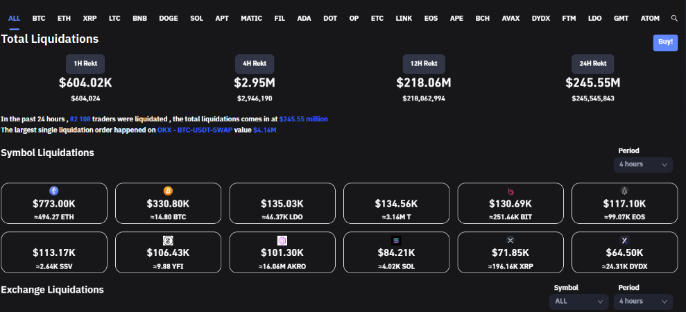 Údaje z Coinglass ukázali, že v priebehu tohto pádu bolo zlikvidovaných až 245 miliónov dolárov za 24 hodín. Pre porovnanie, v čase písania článku najnovšie údaje signalizujú, že za posledný deň bolo zlikvidovaných ďalších 60 miliónov dolárov, čo jasne hovorí o stále pretrvávajúcom negatívnom sentimente.