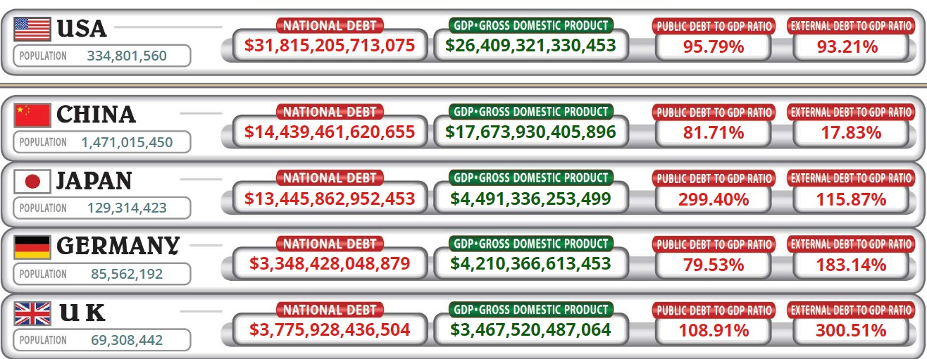 Podľa portálu CNBC, až 60 % rozvojových krajín s nízkymi príjmami je dnes v nebezpečne vysokom riziku dlhovej tiesne. Globálny dlh dosiahol v roku 2022 hodnotu 305 biliónov dolárov. Vo svete dnes máme viac dlhu ako peňazí v obehu. V mnohých štátnych rozpočtoch dokonca chýbajú prostriedky na zabezpečenie základných životných potrieb obyvateľstva.