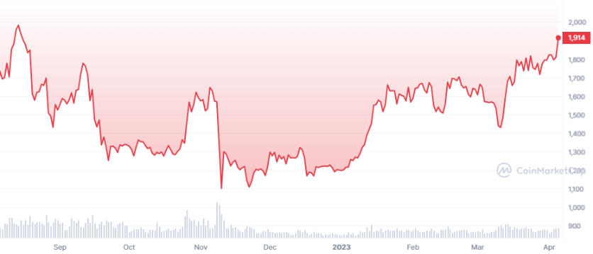 https://images.cointelegraph.com/images/840_aHR0cHM6Ly9zMy5jb2ludGVsZWdyYXBoLmNvbS91cGxvYWRzLzIwMjMtMDQvNDU4ZTIxNjUtZGJiNi00NDExLTg0M2YtNjhhMGNmZTMxOGZjLmpwZw==.jpgEther has broken the $1,900 resistance level for the first time in months and is currently sitting above $1,911.