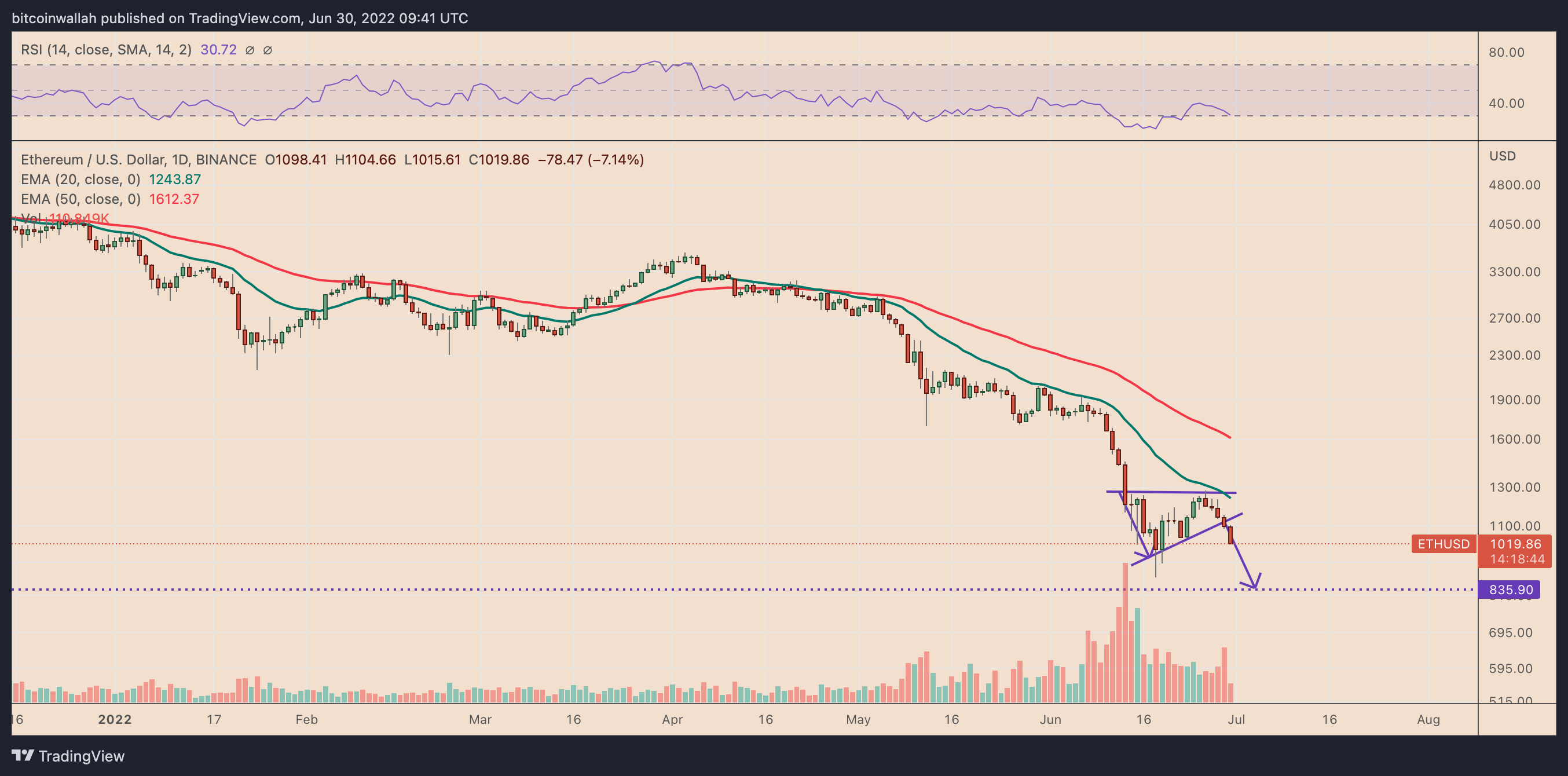 As a result, ETH’s downside target in Q3, led by the ascending triangle setup, comes to be near $835, almost 20% lower than today’s price.