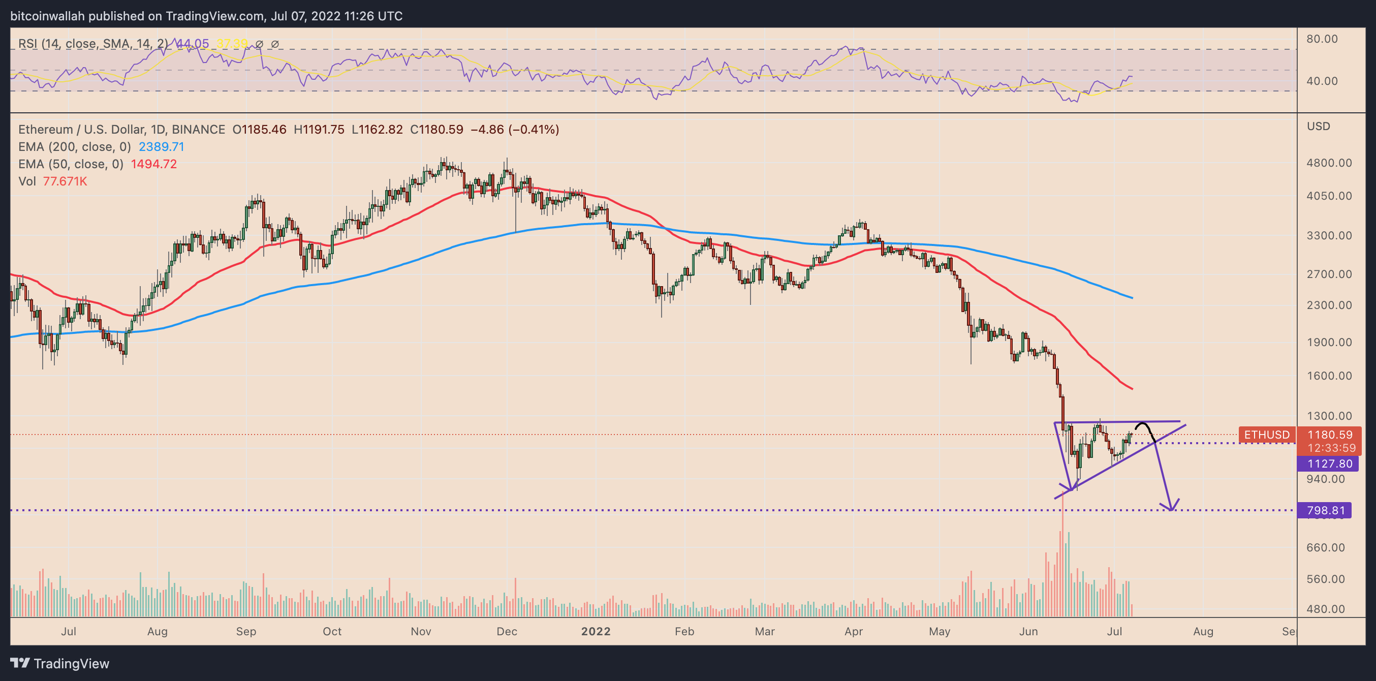 Ether risks undergoing a major breakdown in Q3/2022 since it has been painting a classic continuation pattern called the ascending triangle, as illustrated in the chart below. Therefore, ETH’s price could decline to nearly $800, almost 32% lower than today’s price.