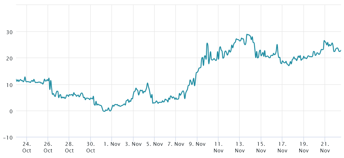 Currently there is backwardation in the contracts and this situation is atypical and usually deemed bearish. The metric did not improve after ETH rallied 5% on Nov. 22, reflecting professional traders’ unwillingness to add leveraged long (bull) positions.