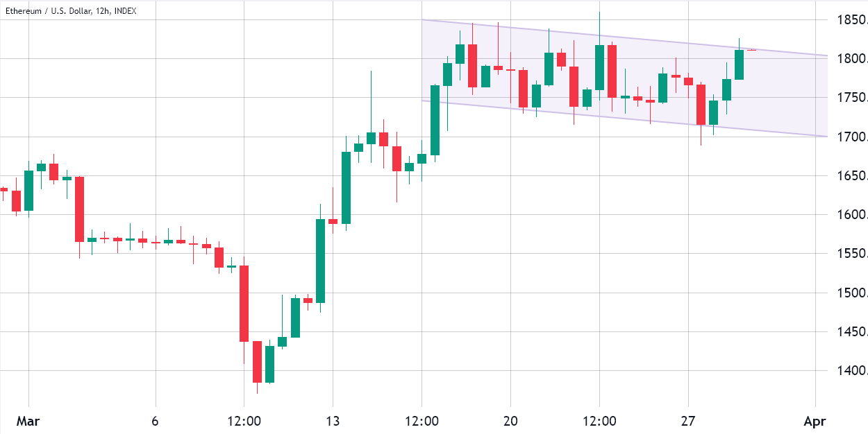 The delta skew indicator has been neutral since March 22, indicating similar pricing for upside and downside options. However, given that Ether’s price is nearing its highest level in seven months, at $1,800, one would expect the protective put options to trade at a premium — which is not the case.