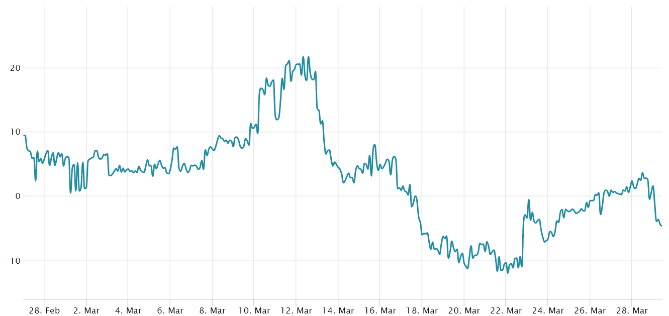 On March 29, derivatives traders using futures contracts became slightly more bullish as the indicator moved to 4%. The futures premium reached its highest level in four weeks, despite remaining below the 5% neutral threshold. Those traders became even more confident that the market structure would remain stable.