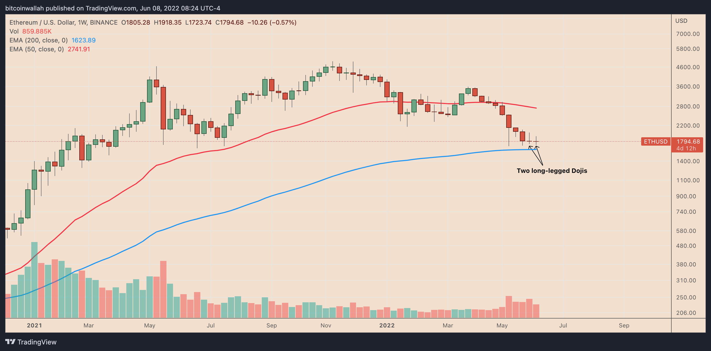 https://images.cointelegraph.com/images/840_aHR0cHM6Ly9zMy5jb2ludGVsZWdyYXBoLmNvbS91cGxvYWRzLzIwMjItMDYvOGZkZDQzMTktY2Y1MC00MGZjLTgwOTktNmZlNTc4Zjk5YTZlLmpwZw==.jpgEthereum’s native token, Ether (ETH), looks poised to undergo a sharp upside retracement in the coming weeks after painting a so-called “double doji” pattern, accompanied by a few bullish technical indicators.