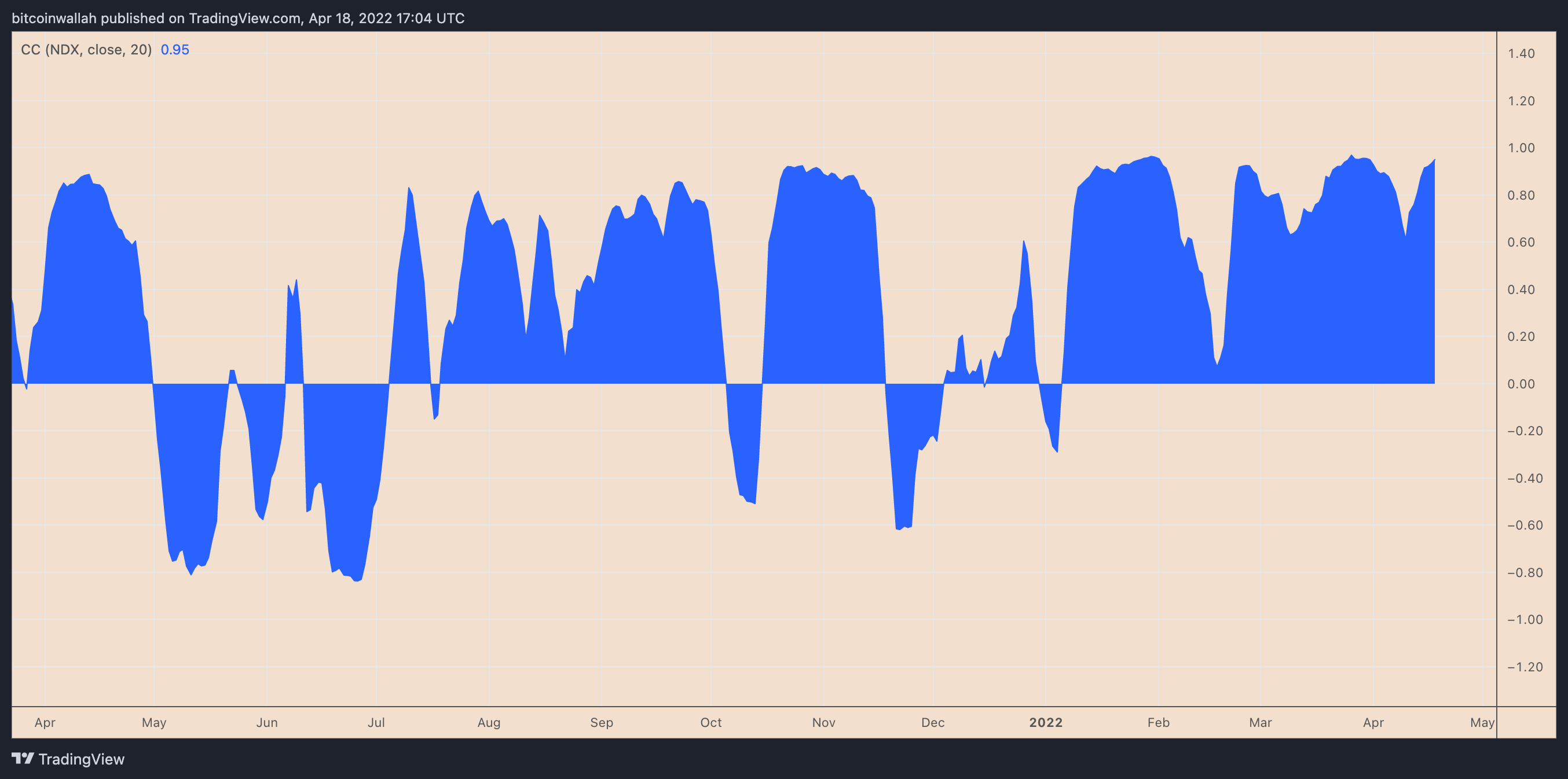 For instance, the correlation coefficient between Ether and Nasdaq 100 was 0.95 this April 19. A coefficient of 1 means that the two assets move in perfect tandem.