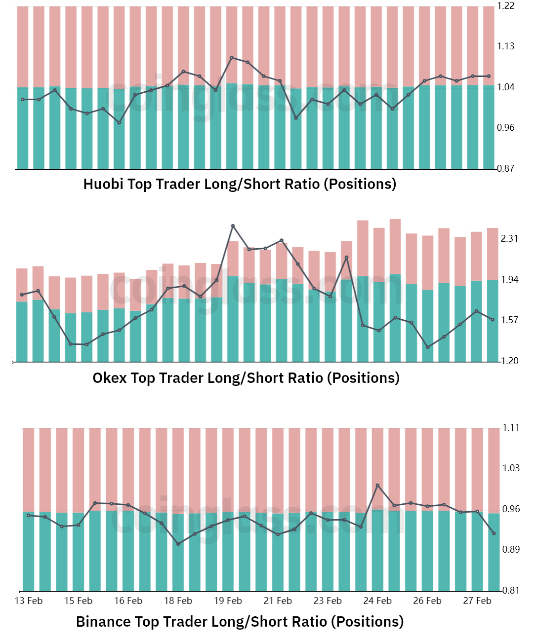 However, this impact was more than compensated by OKX traders increasing their bullish bets from 2.15 to 1.58 from Feb. 24 to Feb. 28. On average, top traders decreased their longs by 8% over the past four days.