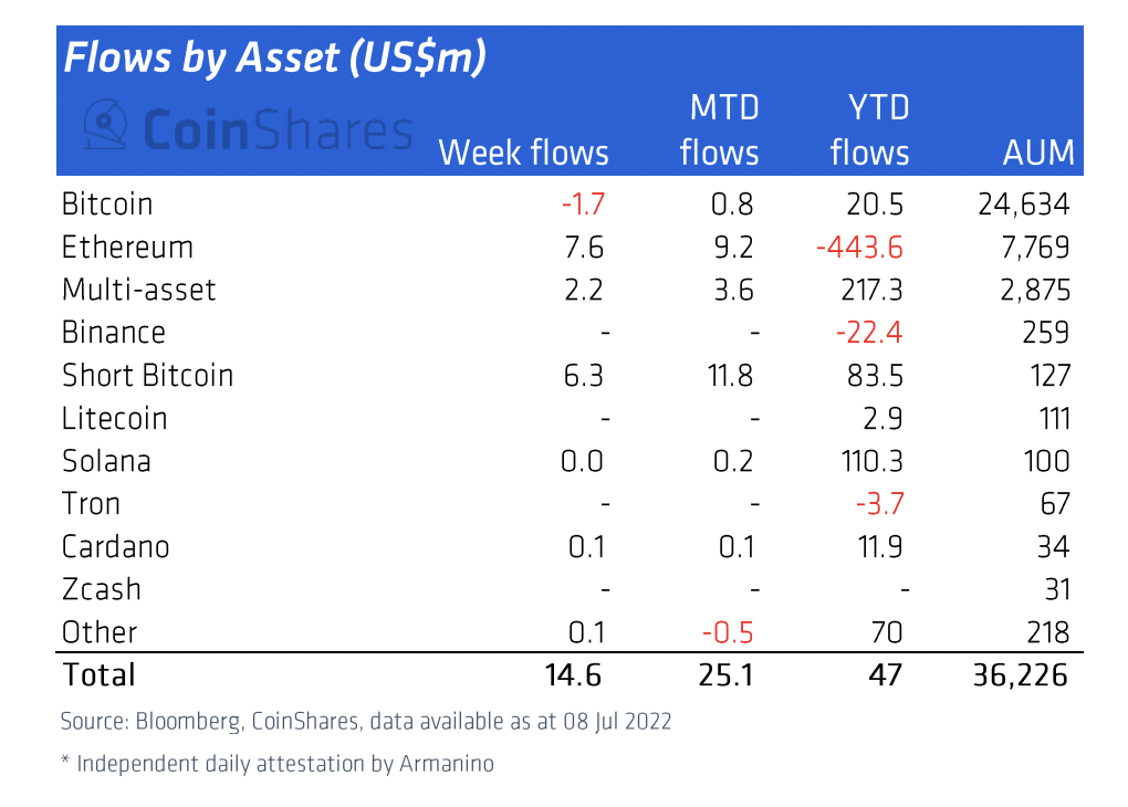 In detail, Ethereum funds amassed $7.6 million in the week ending July 8, according to CoinShares’ latest report.